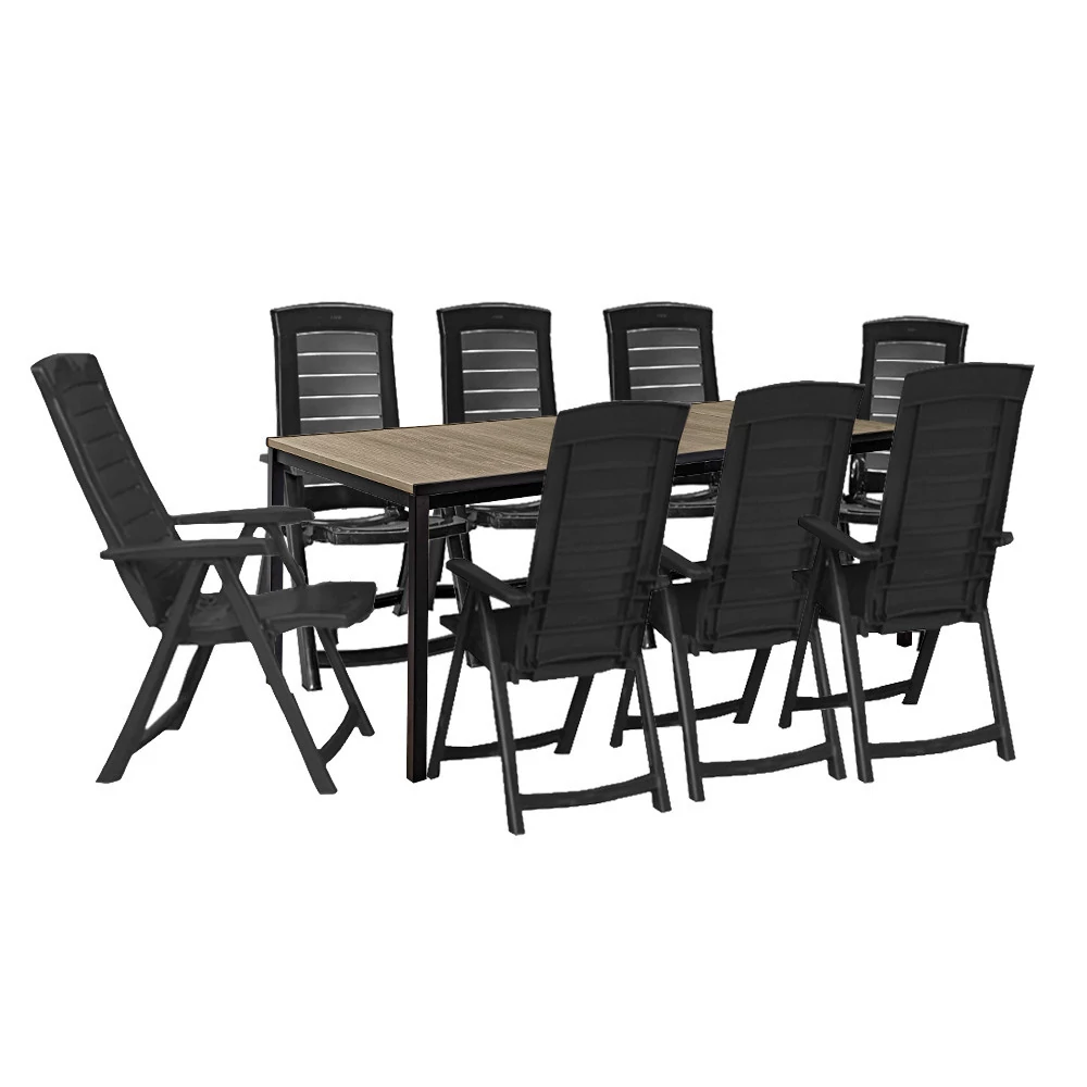 Portico Large 8 + 1 kerti garnitúra – kőris asztallap - grafit dönthető székek